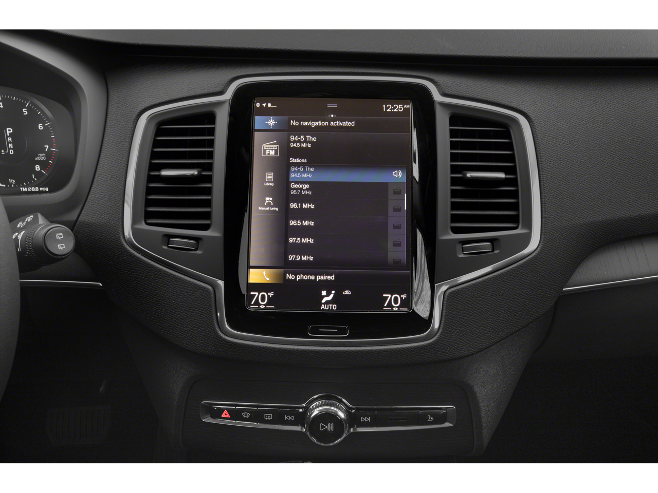 - Radio: High Performance Audio System -inc: 220-watt audio w/10 speakers including subwoofer, 9" Volvo Sensus touchscreen display, Bluetooth® connectivity w/audio streaming, SiriusXM satellite radio w/3-month trial subscription, smartphone integration (Apple CarPlay/Android Auto), 2 front USB connectors, voice control and WiFi hotspot w/complimentary trial subscription