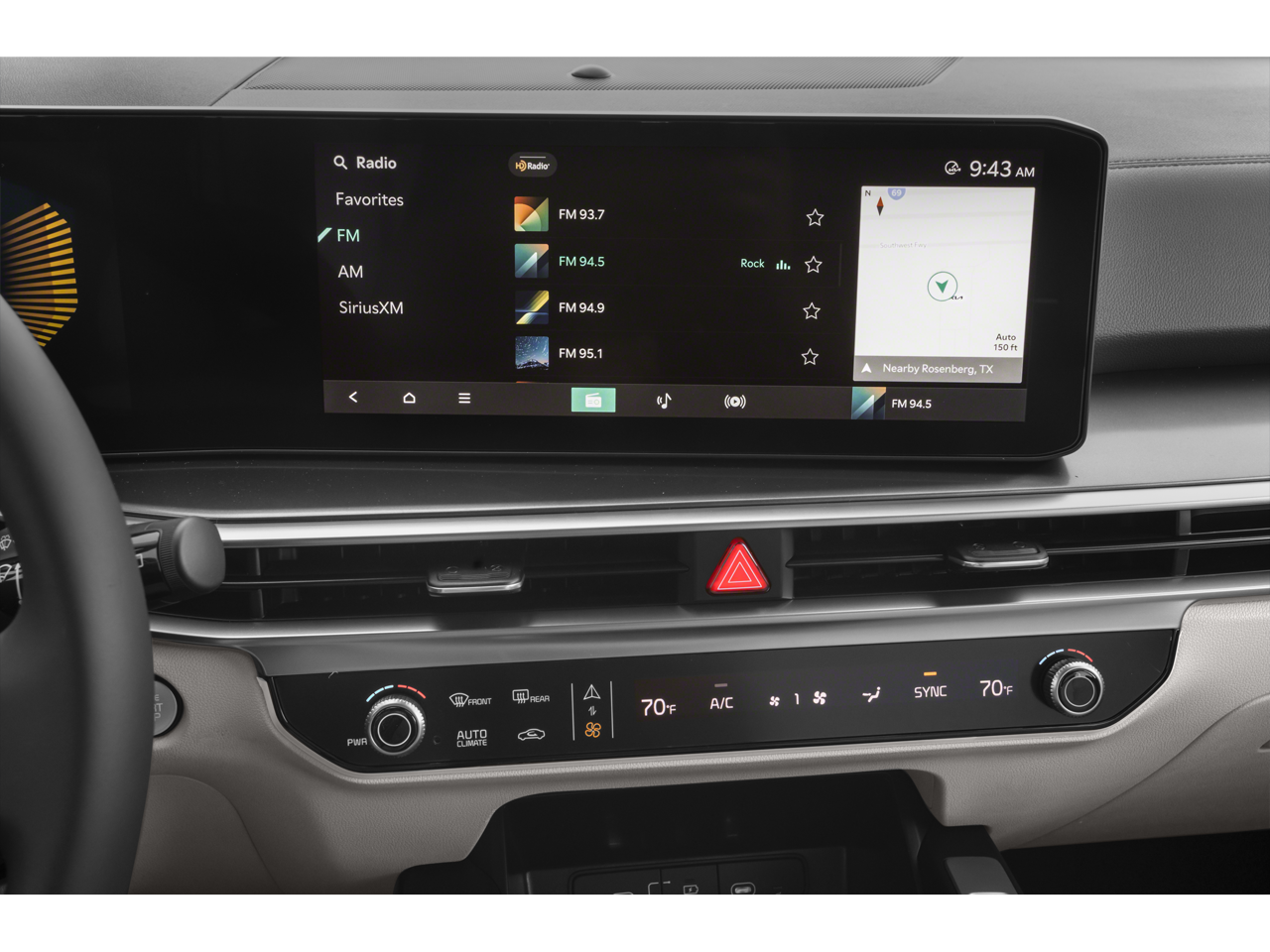 - Radio: AM/FM Standard Sound System -inc: 12.3" ccNC lite touchscreen, navigation, HD Radio, Bluetooth w/audio remote control, wireless Android Auto and wireless Apple CarPlay, voice recognition, Sirius XM, modem, Kia Connect, Wi-Fi hot spot, Over-The-Air Updates (OTA), 6 speakers and USB